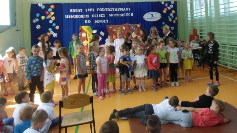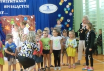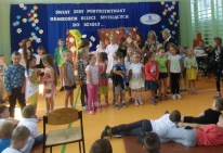 22 czerwca ,na zaproszenie Pani dyrektor,odwiedziły nas Przedszkolaki z pobliskiego przedszkola wraz ze swoimi Nauczycielami. Czekała na nich miła niespodzianka. członkowie koła teatralnego ,, Mały artysta,,przygotowali dla nich baśń Andersena pt.,,Calineczka,,.Po występie ,który bardzo się naszym małym Gościom podobał, wszyscy obecni na sali ruszyli w taneczne pląsy. Zabawa była niezwykle udana, co widać na załączonych zdjęciach autorstwa Pani E.Bały.Na koniec każdemu Przedszkolakowi Pani dyrektor E.Drej osobiście wręczyła soczek. Do zobaczenia za rok!