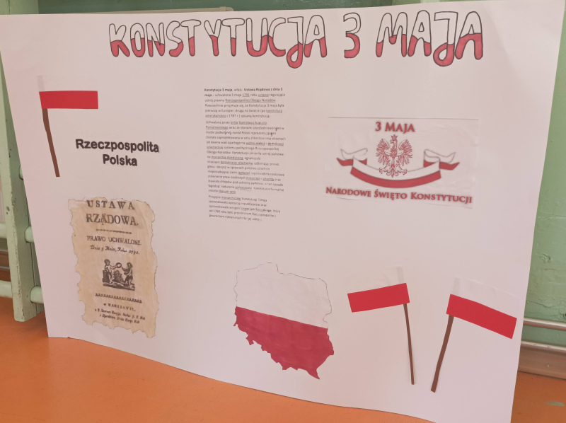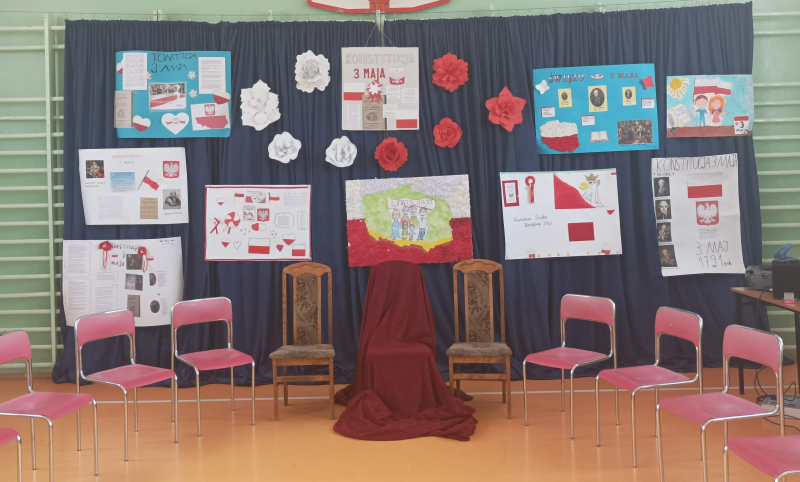 W dniu 2 maja w naszej szkole zorganizowany został uroczysty apel upamiętniający wydarzenia które miały miejsce dnia 3 maja 1791 roku na Zamku Królewskim w Warszawie. Została wtedy uchwalona pierwsza w Europie, a druga na świecie Konstytucja.